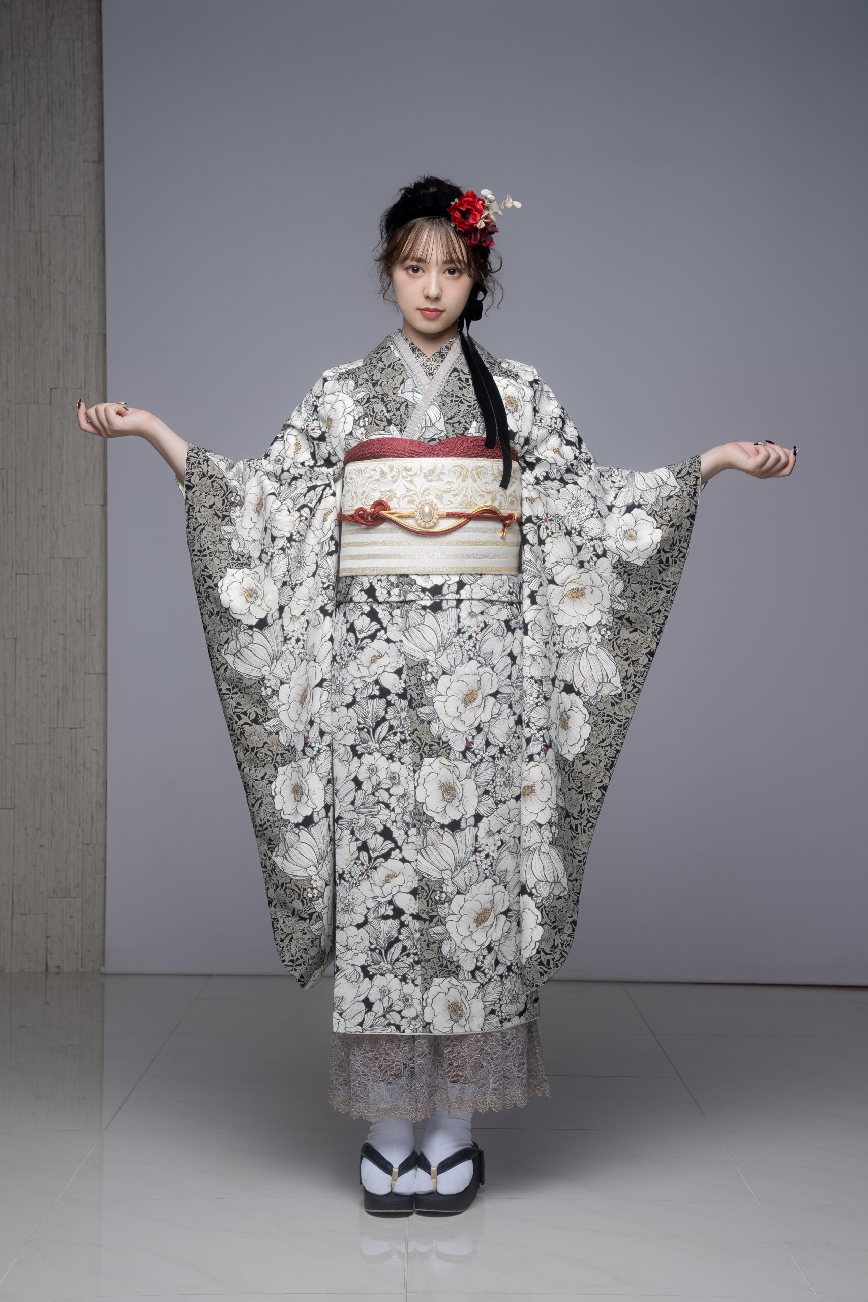 ゴシックさと繊細に描かれた牡丹柄振袖!! クラシックさと現在っぽさを兼ね備えた一枚! まず、モノトーンの色使いと大きな牡丹柄が目を引き、クラシックでありながらも現代的な印象を与える一枚です。 振袖全体に広がる牡丹柄は、ゴージャスで洗練された印象を与えます。 牡丹は「富貴」や「高貴」の象徴とされ、日本の伝統的な美しさを引き立てるモチーフです。 ゴシックスタイルの要素が加わり、重厚感のある雰囲気が漂っています! 今回のご紹介振袖が気になった方は、遊楽市に来店してチェックしてみてください★ 前の記事 一覧を見る 次の記事